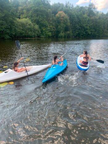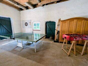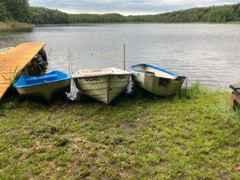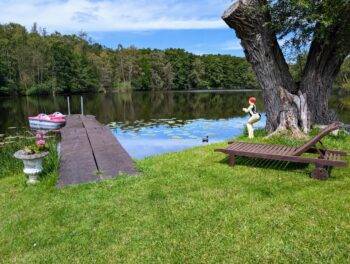 Vor dem Haus befinden sich weitere Sitzbereiche und Sonnenliegen. Auf dem Hof sorgen eine Spielscheune mit Tischtennis, Kicker und Dart sowie eine Sauna, Leihfahrräder, Kanus und Tretboot für Unterhaltung und Spaß. Für Angler steht am 250 m entfernten Lüschower See in Ruderboot mit Elektromotor zur kostenfreien Nutzung zur Verfügung.