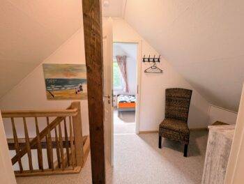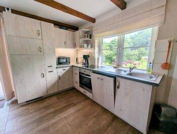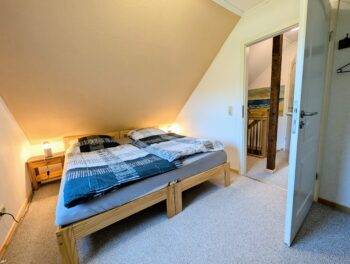 Das komfortabel ausgestattete Haus erstreckt sich über 2 Etagen. Im Erdgeschoss befindet sich der offene Wohnbereich, mit voll ausgestatteter Küche. Das helle Badezimmer bietet Ihnen eine große, ebenerdige Dusche. Im Obergeschoss befinden sich die beiden Schlafzimmer. Ein Schlafzimmer mit Doppelbett und 1 Schlafzimmer mit 2 Einzelbetten. Ein weiteres kleines Schlafzimmer mit Einzelbett befindet sich im Erdgeschoss. Vom Wohnbereich, dem Schlafzimmer und der Terrasse genießen Sie einen einzigartigen Ausblick auf den See und zur Ponykoppel.