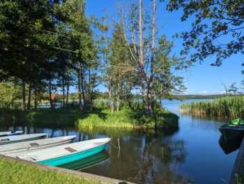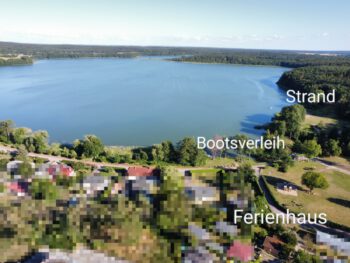 Vom Haus gelangen Sie in wenigen Schritten (100 m) zum Groß Labenzer See und einem Steg. Ein Bootsverleih befindet sich ebenfalls direkt nebenan. Den Strand, Imbiss, Spielplatz, Volleyballplatz und Tischtennisplatte erreichen Sie in 300 m. Der See eignet sich mit seiner ausgezeichneten Wasserqualität hervorragend zum Baden und Angeln. Nur wenige Meter vom Ferienhaus beginnt ein riesiges Waldgebiet des Naturparks Sternberger Seenland. Starten Sie direkt vom Haus zu ausgiebigen Rad- und Wandertouren durch die Natur. Einige hundert Meter entfernt erreichen Sie den Angelteich mit Fischverkauf. Hier bekommen Sie Karpfen, Störe, Forellen, Welse, Aale und auch Angelkarten.