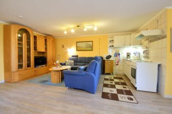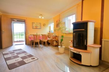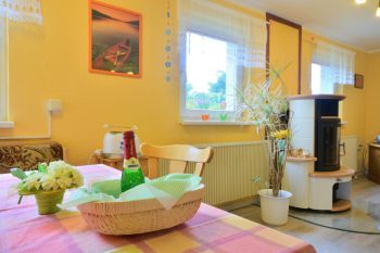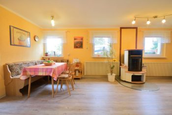 In diesem Ferienhaus, mitten im „Naturpark Mecklenburgische Schweiz“ und im Herzen Mecklenburgs, werden Sie sich richtig wohlfühlen. Das familienfreundliche Haus bietet auf 64 m² genügend Platz für bis zu 5 Personen. Der große Wohnbereich ist mit einem Schlafsofa (1,20 m breit), Sat-TV, Radio, Esstisch und einer kompletten Küchenzeile ausgestattet. Ein Kaminofen sorgt an kalten Tagen für gemütliche Stunden. Das geräumige und helle Badezimmer besitzt neben einer Dusche eine Fußbodenheizung. Im Schlafzimmer finden bis zu 4 Personen auf dem Doppelbett (1,80×2,00 m) und dem Schlafsofa (1,40×2,00 m) ausreichend Platz für einen erholsamen Schlaf. Ein Kinderreisebett und Hochstuhl stellen wir Ihnen gern kostenfrei zur Verfügung. WLAN ist im gesamten Haus kostenfrei. Das Haus ist ebenerdig und barrierefrei.
