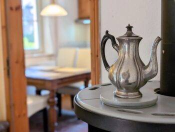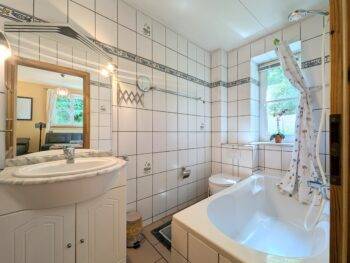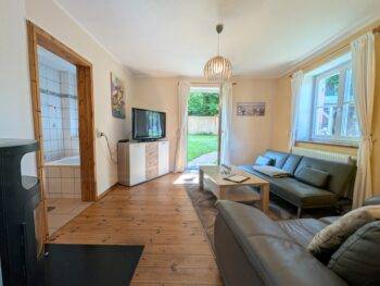 🔥 Gemütlichkeit: Kaminofen im Wohnbereich & Badewanne im Bad.