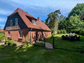 Vor dem Haus befindet sich ein eingezäuntes Grundstück mit Sitzbereich und Sonnenliegen. Eine Grillhütte befindet sich direkt am Haus. Auf dem Hof sorgen eine Spielscheune mit Tischtennis, Kicker und Dart sowie eine Sauna, Leihfahrräder, Kanus und Tretboot für Unterhaltung und Spaß. Für Angler steht am 250 m entfernten Lüschower See in Ruderboot mit Elektromotor zur kostenfreien Nutzung zur Verfügung.