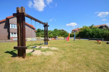 Das große Grundstück, welches von Erdbeerfeldern, einem Vogelschutzgebiet und einem Golfplatz umgeben ist, bietet Ihnen einen hohen Komfort. In der hauseigenen Tiefgarage können Sie Ihren PKW und Ihre Fahrräder kostenfrei und sicher parken. Ein Tischtennisraum steht Ihnen ebenfalls zur kostenlosen Nutzung bereit. Im Innenhof und auf der Wiese stehen Ihnen viele Sitzgelegenheiten, ein großer Spielplatz aus Holz, Grillplätze, ein Saunahaus, ein Fischputzraum und ein Waschmaschinenraum mit Trocknern zur Verfügung.