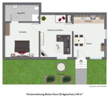 Es gibt Orte, an denen man bleiben möchte, weil Sie einfach schön sind. Dazu zählt zweifelsfrei Dieser. Schon beim überqueren des Dammes auf die Insel stellt sich ein Gefühl der Freiheit und Erholung ein. Hier können Sie durchatmen und ankommen in der liebevoll eingerichteten Ferienwohnung Buten Stuv. Auf 40 m² finden bis zu 3 Erwachsene + Kleinkind ausreichend Platz. Ein Wohnbereich lädt zu gemütlichen Stunden des Beisammenseins ein. In der modernen Küche können Sie Ihre Lieblingsspeisen zubereiten. Im separaten Schlafzimmer können Sie sich erholen und ausschlafen. Für digitale Unterhaltung sorgen WLAN und SAT-TV.