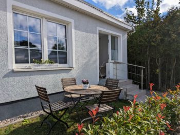 Vor dem Haus sowie im Innenhof befinden sich mehrere Sitzbereiche. Ein Grill steht Ihnen zur Verfügung. Parken können Sie vor dem Haus kostenfrei.