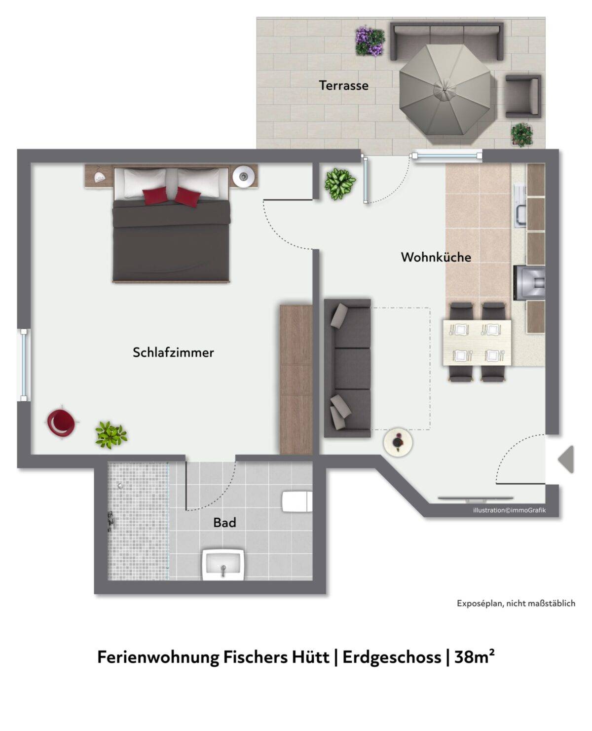 Ferienwohnung „Buten Stuv“ (40 m², bis 3 Personen, 1 Schlafzimmer + Wohnschlafzimmer)