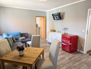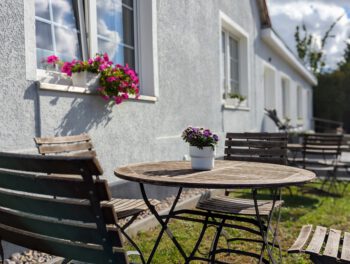 Vor dem Haus sowie im Innenhof befinden sich mehrere Sitzbereiche. Ein Grill steht Ihnen zur Verfügung. Parken können Sie vor dem Haus kostenfrei.