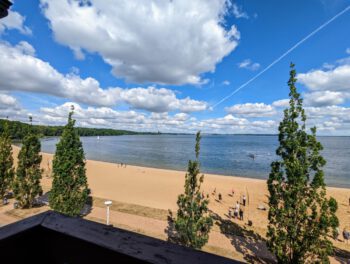 Vor Ort gibt es eine Kajak und Stand-Up-Paddle Vermietstation, die durchgehend geöffnet ist.Zippendorf ist mit seinem feinen Sandstrand und der kleinen Promenade ein beliebter Stadtteil von Schwerin. In wenigen Schritten erreichen Sie Restaurantś, Cafès, Imbiss, ein Naturschutzgebiet, den zoologischen Garten, die Haltestelle der Fahrgastschifffahrt und Weiteres. Ein toller Rad- und Wanderweg, direkt am See entlang, führt direkt zum Schloss und in das Zentrum der Landeshauptstadt.