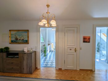 Eindrucksvoll, großzügig und elegant, so lässt sich die „Villa am Strand“ beschreiben. Das Gebäude zählt zweifelsfrei zu den schönsten Wohngebäuden der Stadt. In bester Strandlage verbringen Sie Ihren Urlaub in zugleich zentrumsnaher sowie naturnaher Umgebung.