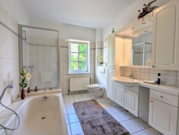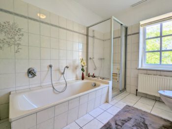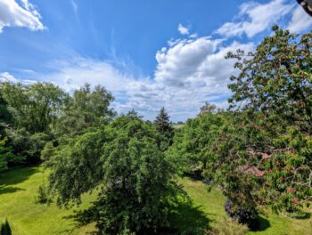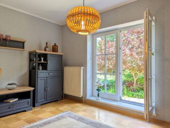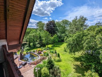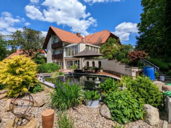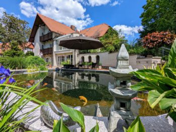 Der große parkähnliche Garten lädt zum Entspannen, Spielen und Entdecken ein. Mehrere Sitzbereiche stehen Ihnen zur alleinigen Nutzung zur Verfügung. Machen Sie es sich z.B. am Teich gemütlich und beobachten die Koi Karpfen oder lesen Sie ein Buch unter den Obstbäumen und hören den Vögeln zu. Auch Ihr Vierbeiner ist herzlich willkommen. Das Grundstück ist komplett eingezäunt.