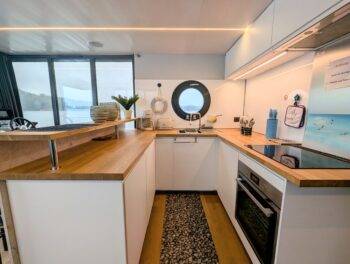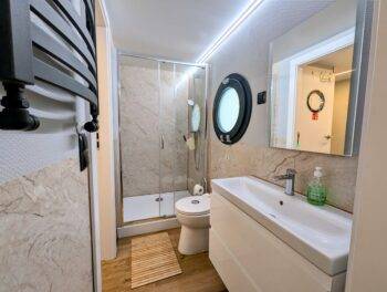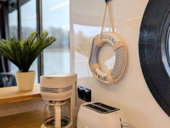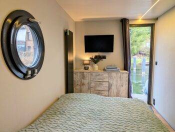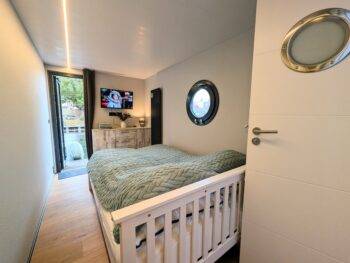 Das Hausboot bietet allen Komfort, den Sie von einem richtigen Zuhause erwarten. 220 V Steckdosen, Fußbodenheizung, zentrale Wasser und Abwasserversorgung, TV in allen Wohnräumen sowie beste Wärmeisolierung und Standardfenster.