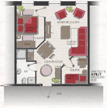 Appartement 8 (bis 3 Personen, 1 Wohnschlafzimmer, Haustiere gestattet)